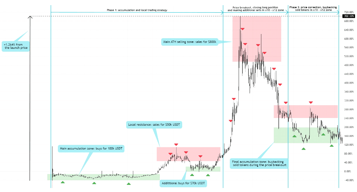 The market value soared x20 its initial price, yielding a net profit exceeding $1.8 million, achieved through strategies aimed at maintaining price levels and maximizing profits.